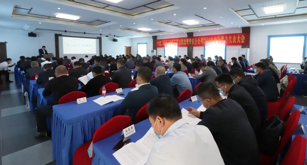 分公司總會計師許淼致歡迎詞,并共同觀看了二局三公司宣傳片與華東分公司宣傳片。